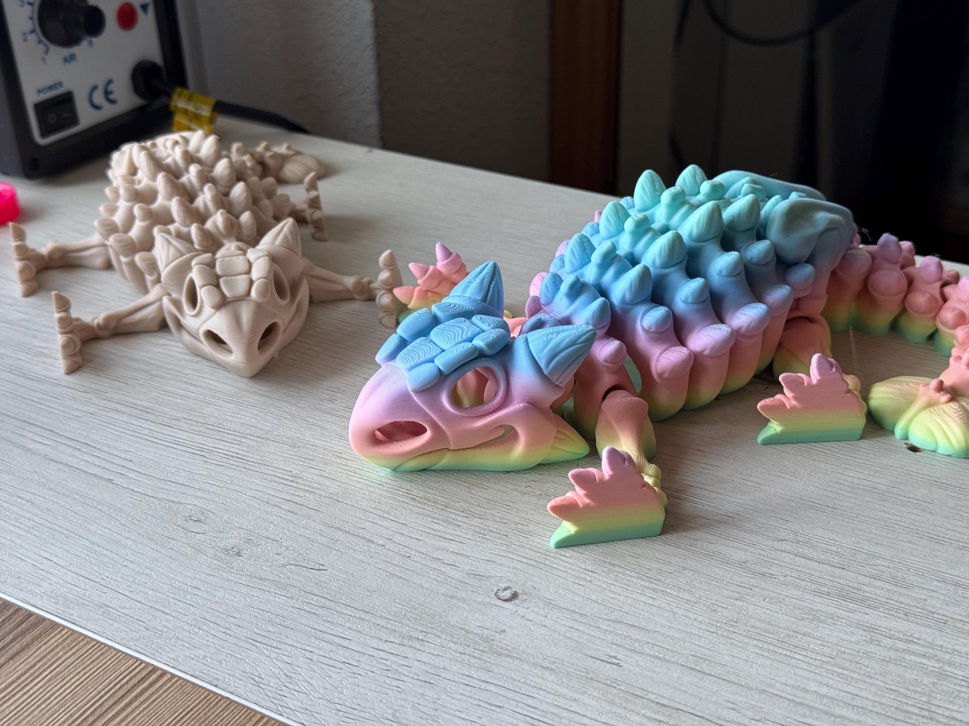 Llévate a casa este adorable anquilosaurio articulado, perfecto para amantes de los dinosaurios, coleccionistas y quienes buscan un regalo original. Disponible en una amplia gama de colores vibrantes, incluyendo opciones que brillan en la oscuridad (GITD), ideal para tu colección, decoración o como un detalle único para regalar.