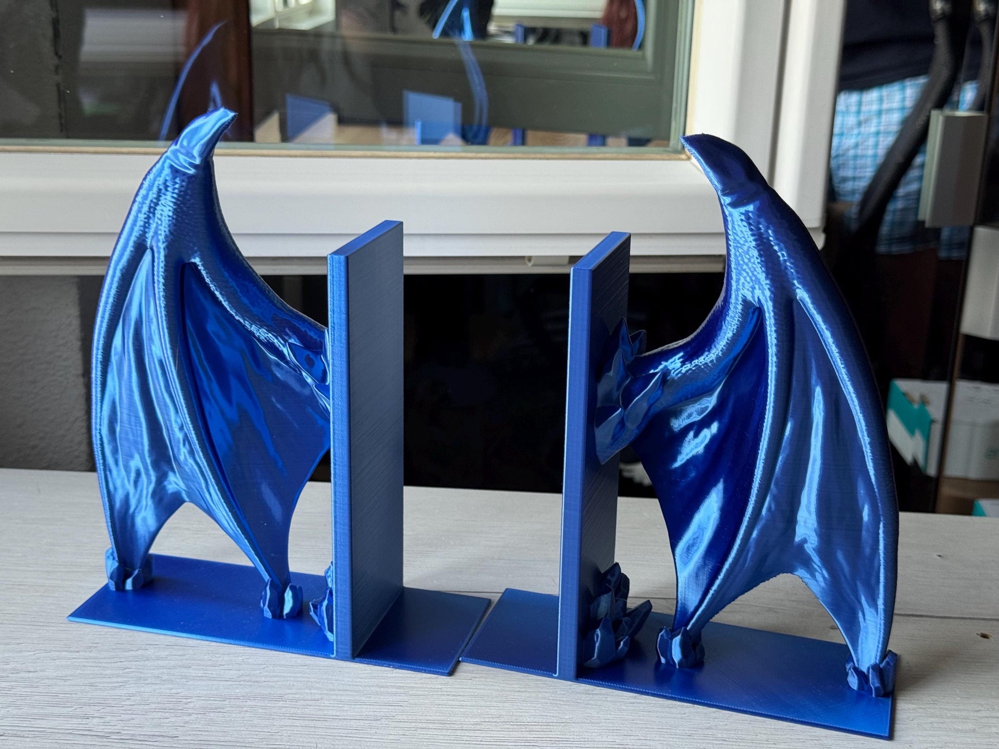 Dragon Wings Bookends β Fantasy Book Shelf Decor | 3D Printed Guardian Wings