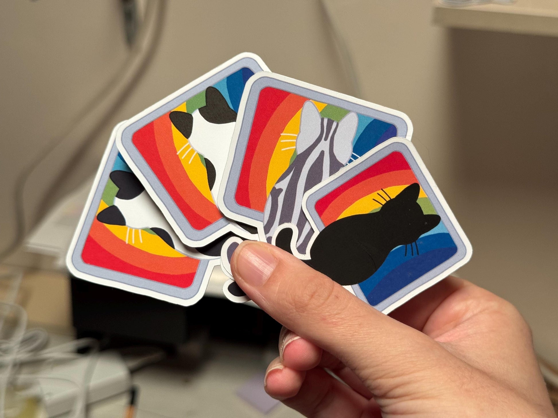 WFH Funny Cat Stickers β Hand Drawn, Custom Colors & Hair Patterns β Matte, Glossy or Holographic β Cute Gift for Cat Lovers